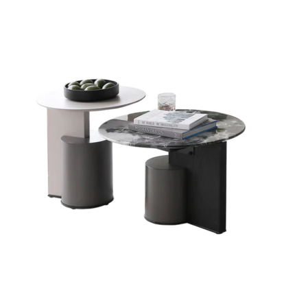 Coffee & Side Table Solid Stainless Steel With Artificial Marble طاولة قهوة وطاولة جانبية من الفولاذ المقاوم للصدأ الصلب مع رخام صناعي
