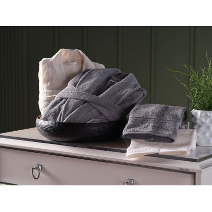 Sense Bathrobe+Face Towel set: SM-LXL Cream, Mink color.