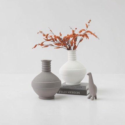 Vase Ceramic White and Grey مزهرية سيراميك بيضاء ورمادية