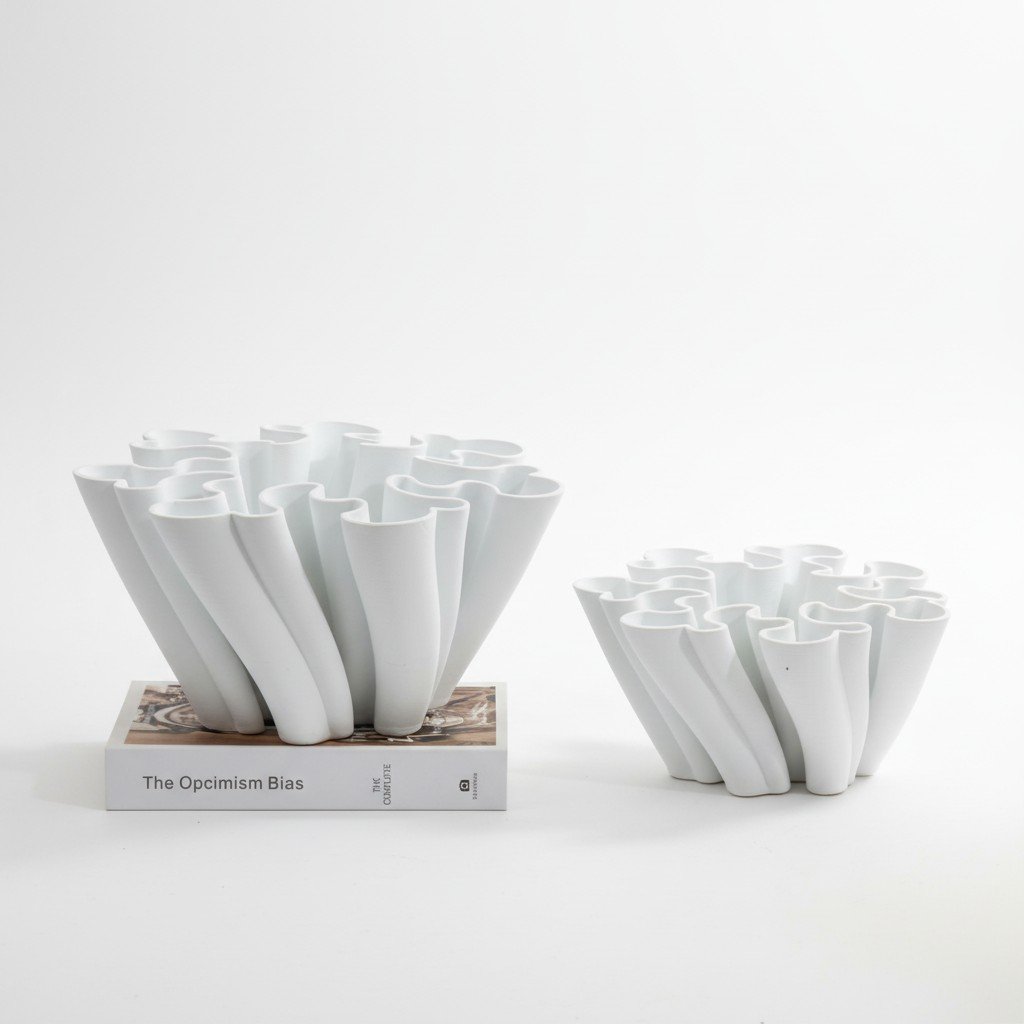 3D Printing Vase Ceramic White مزهرية سيراميك بيضاء مطبوعة بتقنية الطباعة ثلاثية الأبعاد