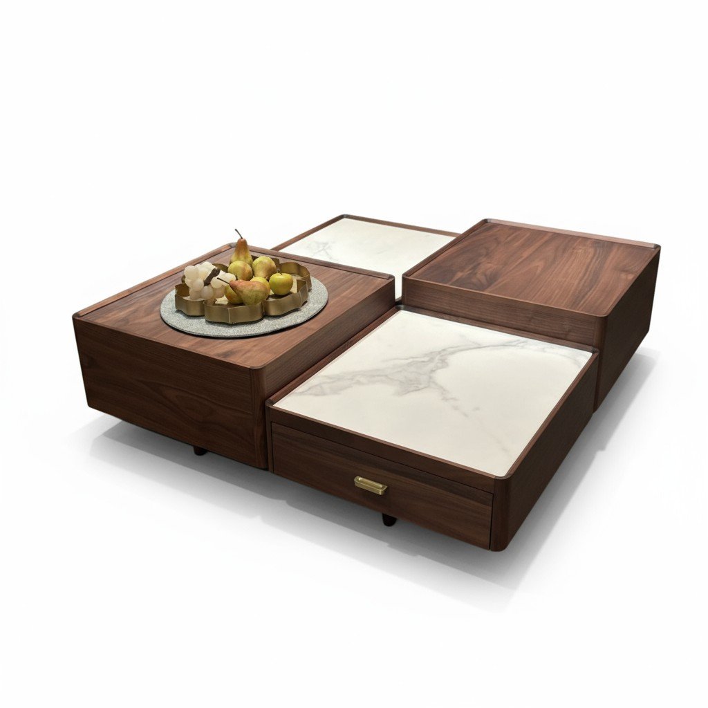 Coffee Table (Wood and Artificial Marble) طاولة قهوة (خشب ورخام صناعي)