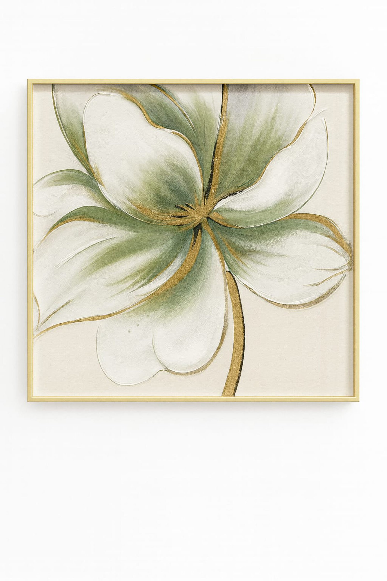 Hand-painted oil on canvas +Metal frame green and white flower لوحة زيتية مرسومة يدويًا على قماش + إطار معدني، زهرة خضراء وبيضاء