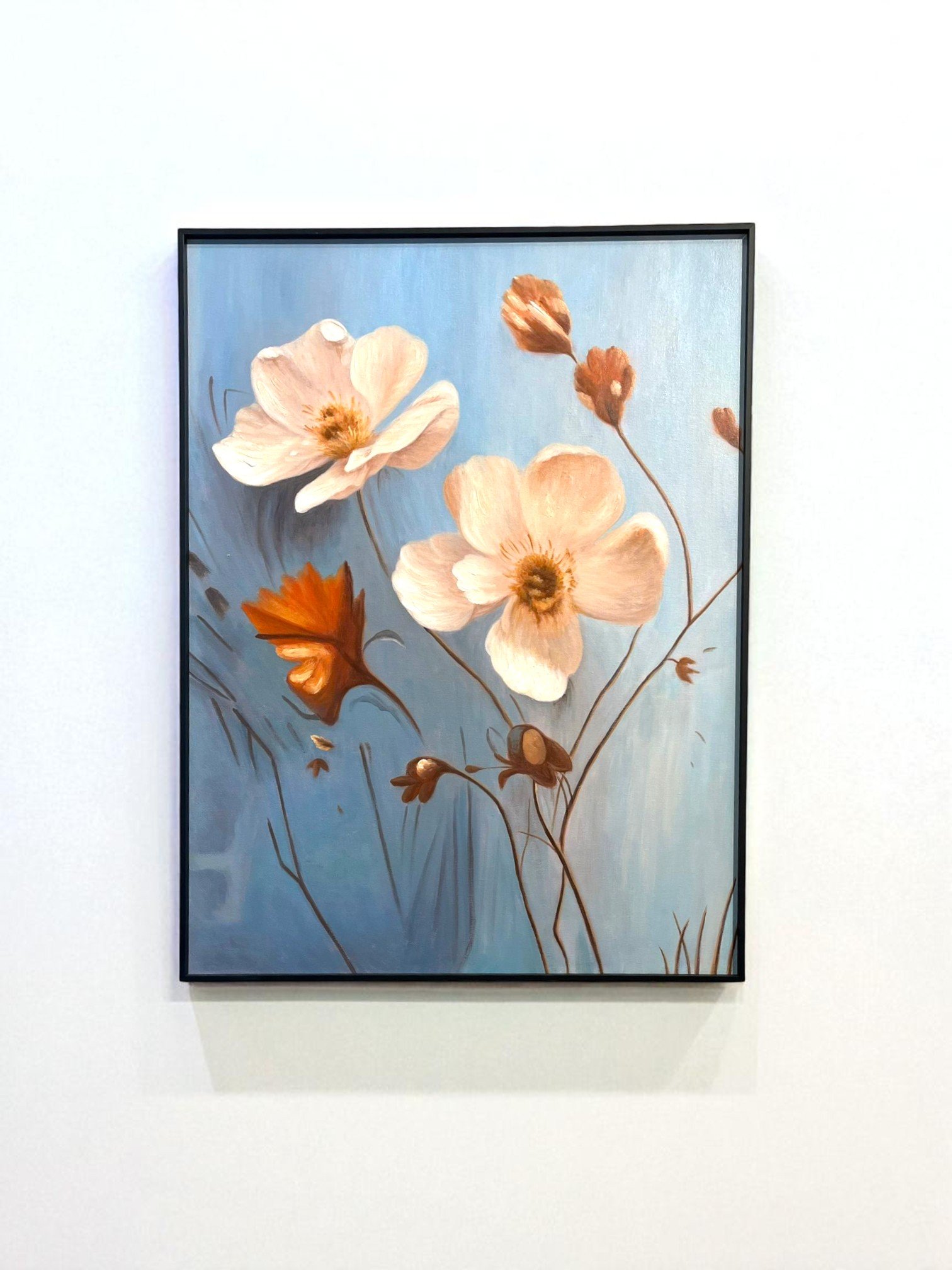 Hand-painted oil on canvas +Metal frame flowers لوحة زيتية مرسومة يدويًا على قماش + إطار معدني مزين بالزهور