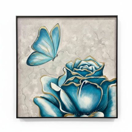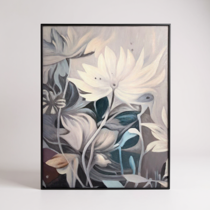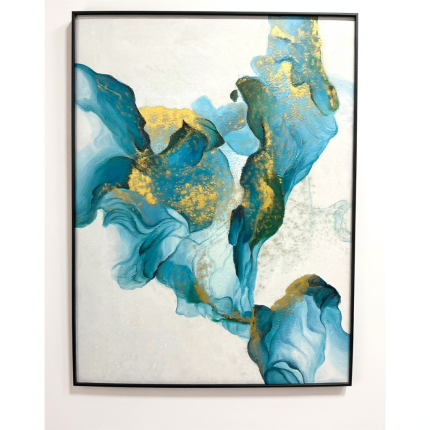 Hand Painted Oil on Canvas + Metal Frame Gry and Gold Paint لوحة زيتية مرسومة يدويًا على قماش + إطار معدني، طلاء رمادي وذهبي