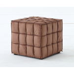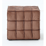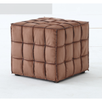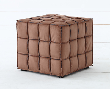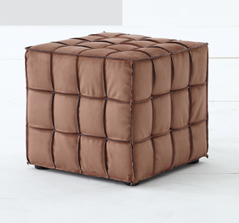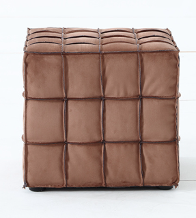 The Hennes stool, also known as a biscuit-tufted pouf, features a distinctive 3D woven design. Crafted from leather or velvet with a solid wood frame and high-density foam, it offers versatile use as a footrest, seat, or small side table. |