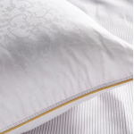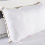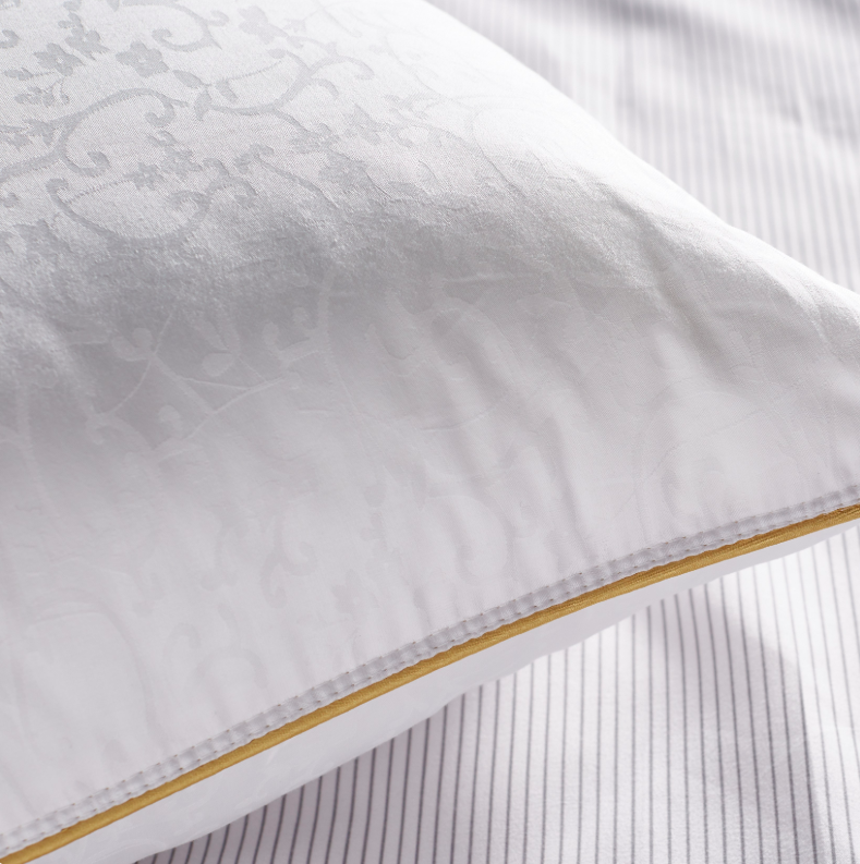 English: The Jakar (Jacquard) Pillow features a textured, durable jacquard cover and is filled with 100% siliconized or Prosoft fiber to retain its shape over time. |
