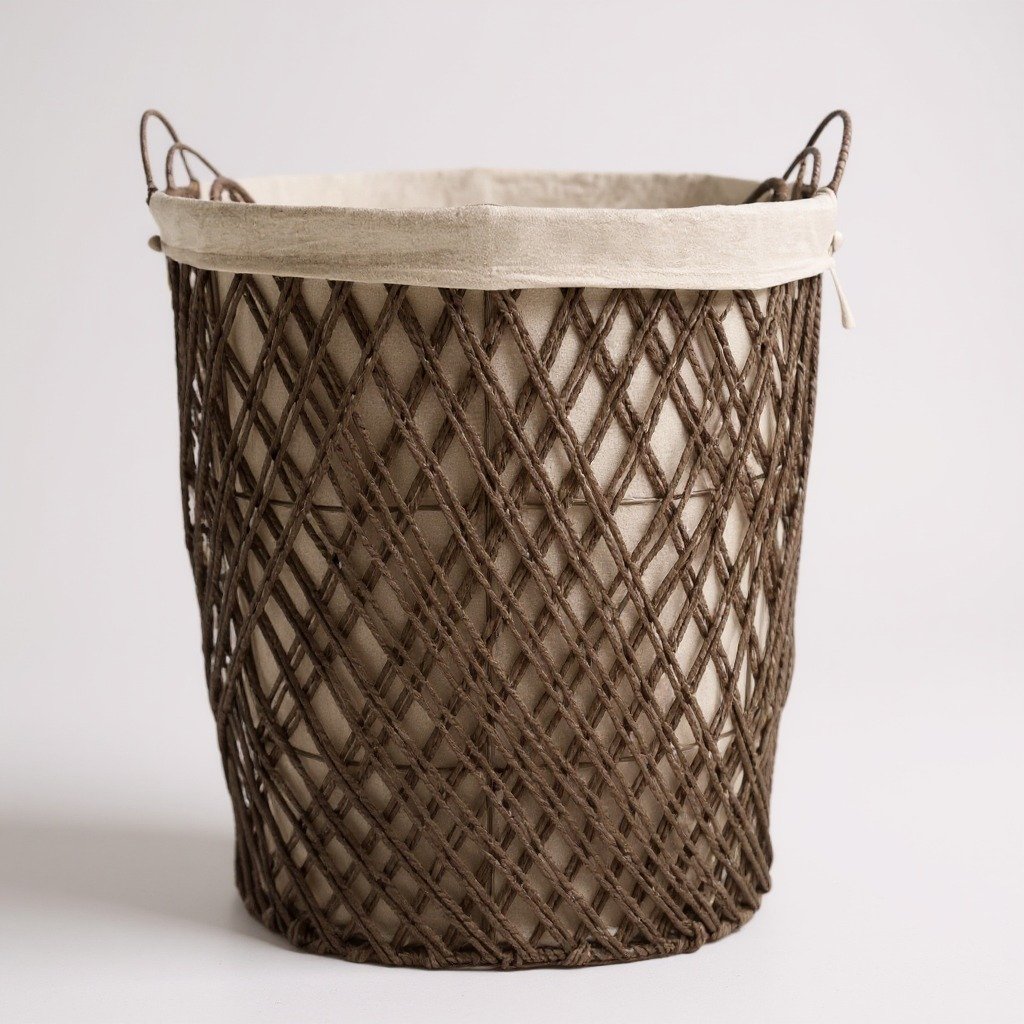 Hand-woven natural fiber baskets with a sturdy frame and removable fabric liners. The set of three nesting sizes provides ample storage for laundry, toys, blankets, or household items. Featuring a rustic-modern lattice design, the natural fiber contrasts with the white liner for a versatile home look. |