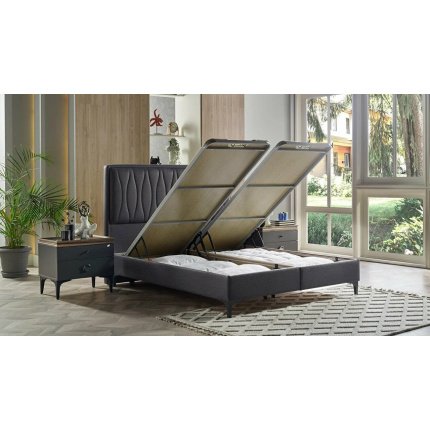 Royal Bed With Storage 1Z-Deren Varak Antrasit Plain 200x200 سرير ملكي مع مساحة تخزين 1Z-Deren Varak Antrasit سادة 200x200