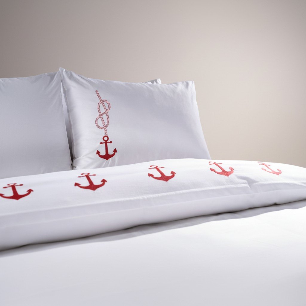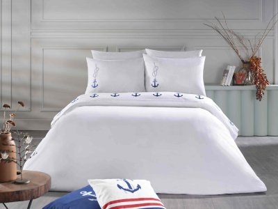 Marine Embroidered Duvet Cover Set Super King طقم غطاء لحاف مطرز بنقوش بحرية، مقاس سوبر كينج