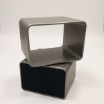 These shapes may represent different material finishes, such as black line cubes made of steel or aluminum with a powder-coated finish, or MDF/fiberboard with a painted or laminated surface. |