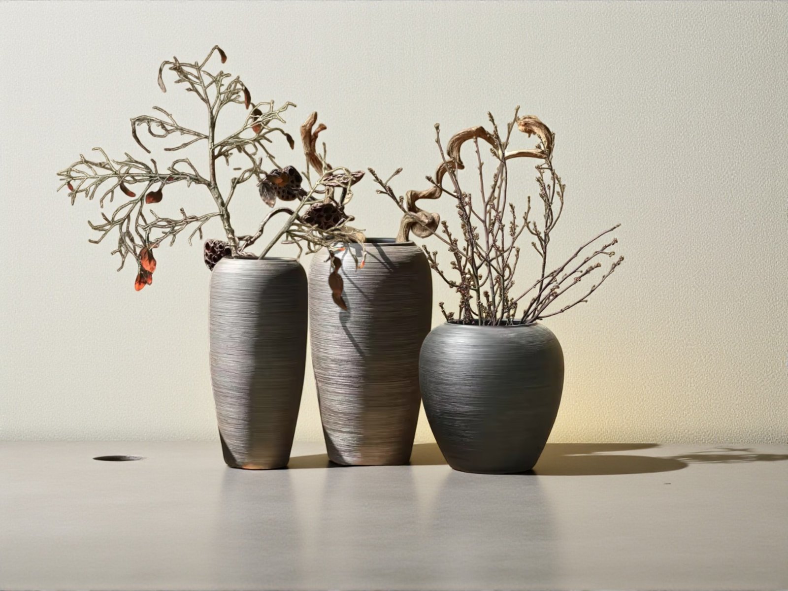 Floor Vase Ceramic Dark Grey مزهرية أرضية من السيراميك باللون الرمادي الداكن