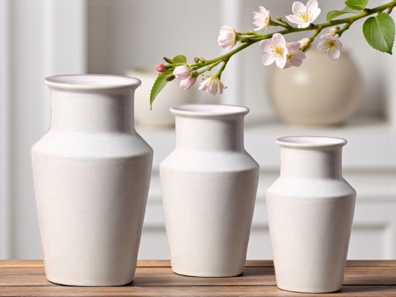 Vase Ceramic White مزهرية سيراميك بيضاء