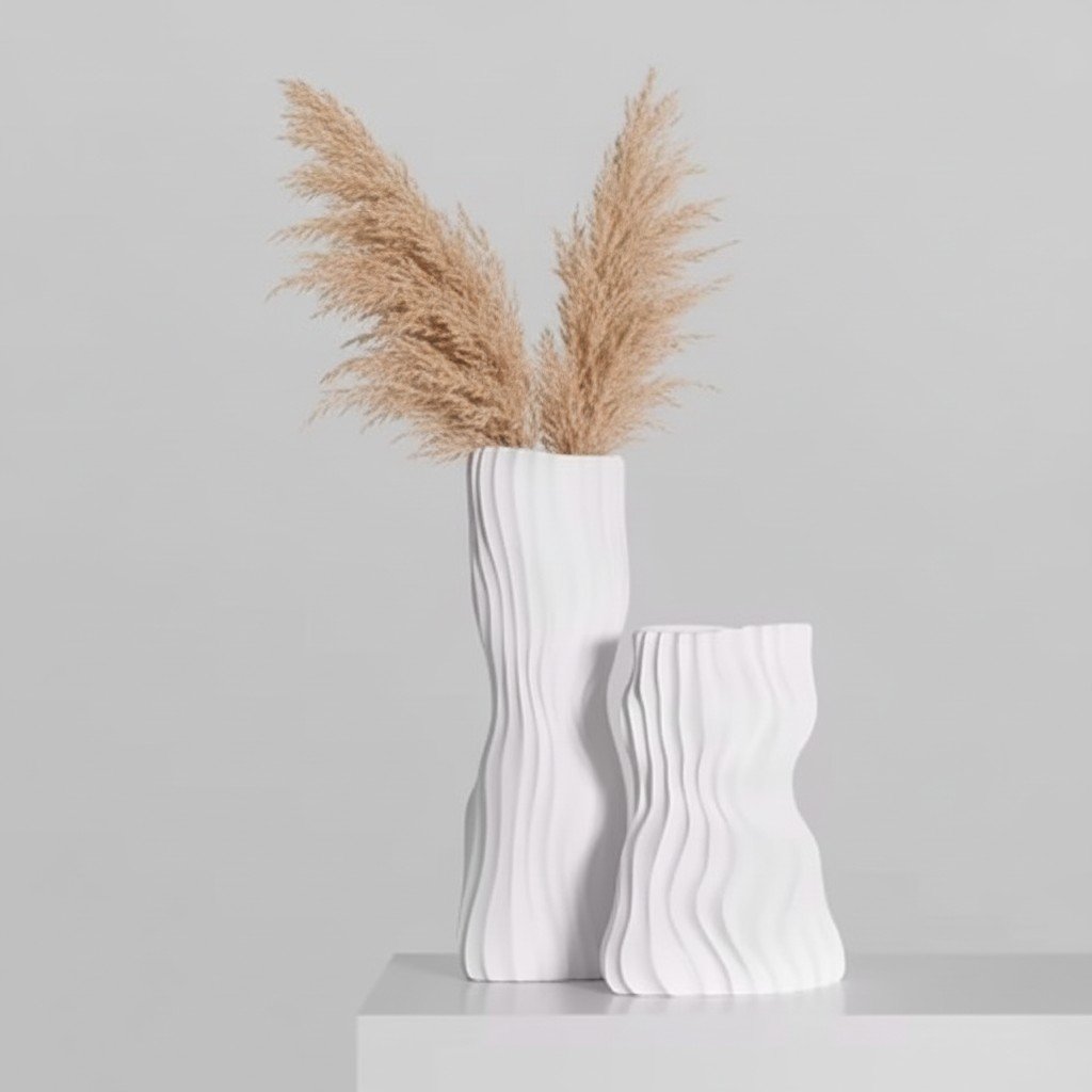 Vase Ceramic White مزهرية سيراميك بيضاء