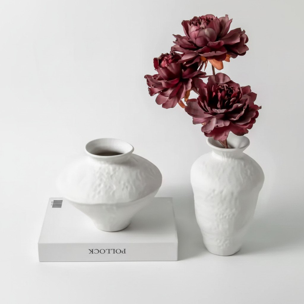 Vase-L Ceramic White مزهرية سيراميك بيضاء كبيرة
